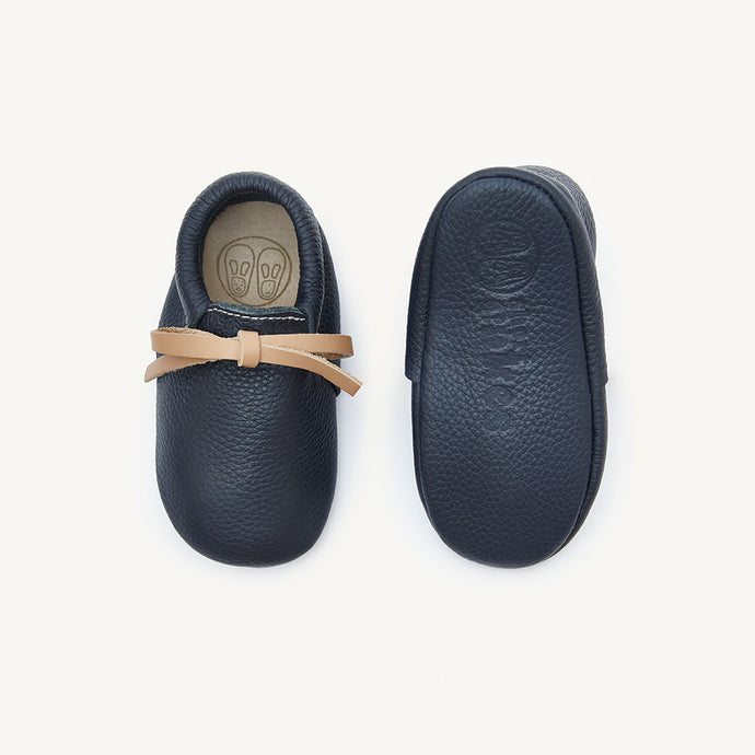 hudson navy leather baby booties